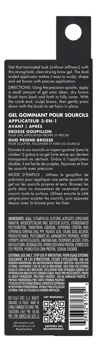 Gel de laminação de sobrancelhas e.l.f., forte, de secagem clara e resistente à água cria sobrancelhas laminadas, penteia e esculpe sobrancelhas, vegano e livre de crueldade — Gel de laminação de sobrancelhas: crie uma aparência de sobrancelha laminada em casa com este gel de laminação de sobrancelhas de secagem transparente da e.l.f. Cosmetics, sem necessidade de consulta profissional! – APLICAÇÃO FÁCIL: O aplicador de duas pontas facilita esculpir, modelar e moldar suas sobrancelhas com total precisão. – FÓRMULA DE LONGA DURAÇÃO: A fórmula resistente a flocos e água oferece a melhor fixação até agora para manter a aparência da sobrancelha sem rigidez. – COMO USAR: Use o carretel de precisão para aplicar uma pequena quantidade de gel nas sobrancelhas secas. Escove os cabelos para frente e para trás para cobrir totalmente com o produto. Molde as sobrancelhas com o pente e, em seguida, pressione suavemente para cima e para fora nas sobrancelhas com o pincel para dar aos cabelos uma aparência laminada. – INGREDIENTES QUE ADORAM A PELE: Todos os produtos E.L.F. são feitos com os ingredientes que você deseja, menos as toxinas que você não vende a preços acessíveis. Todos os produtos da e.l.f. são 100% livres de crueldade e veganos.