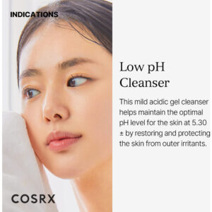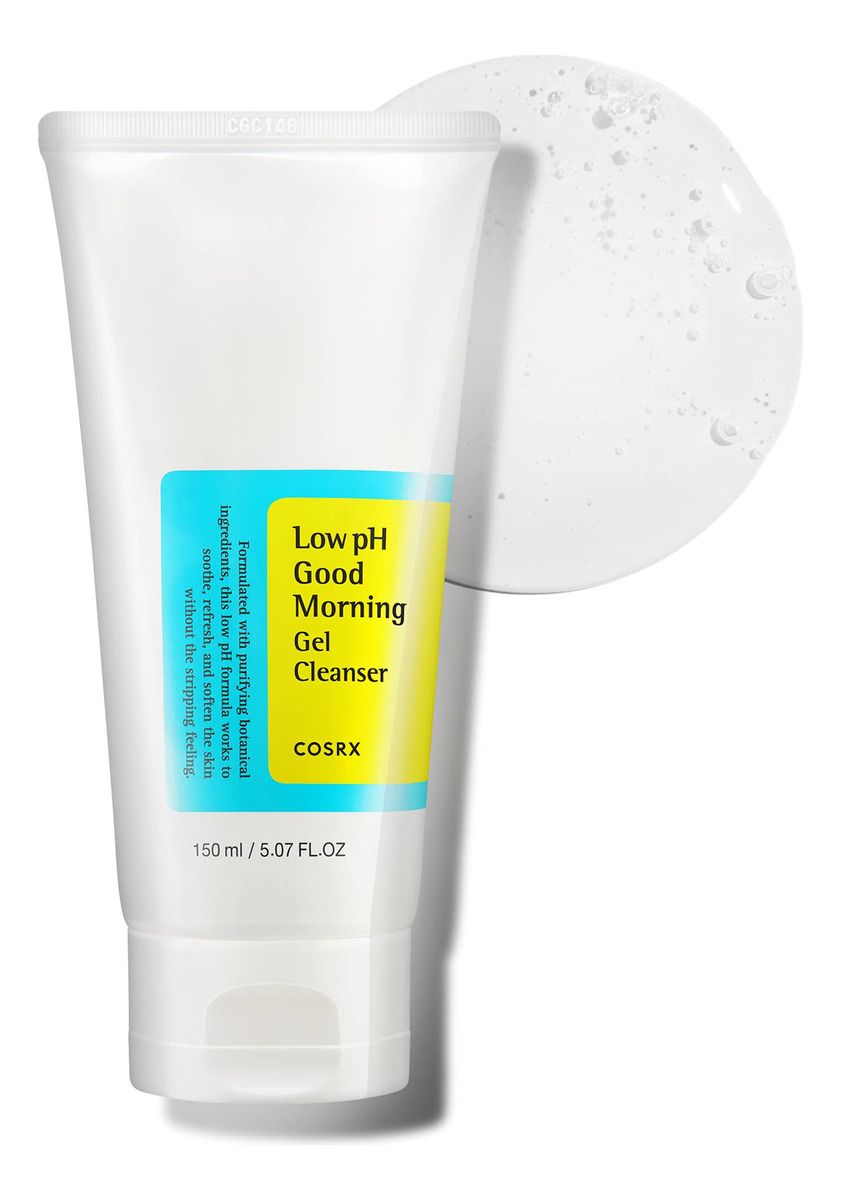 Limpador de gel de bom dia de baixo pH COSRX, limpador facial suave diário para pele sensível com óleo de bha e melaleuca, balanceador de pH, tratamento de pele coreano (5,07 fl.oz/150 ml) – Limpador de gel Good Morning de baixo pH: limpe diariamente com este limpador suave e eficaz, dia e noite, removendo impurezas e fortalecendo a barreira cutânea. – Limpe para um dia luminoso e uma noite sedosa: refinando a textura da pele, o limpador ajudará a limpar sem descascar. Ótimo para todos os tipos de pele, acorde com uma pele mais firme e deixe-a descansar limpa durante a noite. – Ingredientes principais: pH equilibrado, óleo de melaleuca e BHA para acalmar e fortalecer uma pele luminosa e clara. – Inspirado no nível de pH natural da pele: seguindo o nível de pH natural levemente ácido da pele, este limpador ajuda a equilibrar a pele e protegê-la de irritantes causadores de problemas. – Padrões COSRX: Todos os produtos COSRX são formulados com ingredientes que não agridem a pele e aliviam a irritação da pele. Hipoalergênico, testado dermatologicamente, sem testes em animais, sem parabenos, sem sulfatos, sem ftalatos