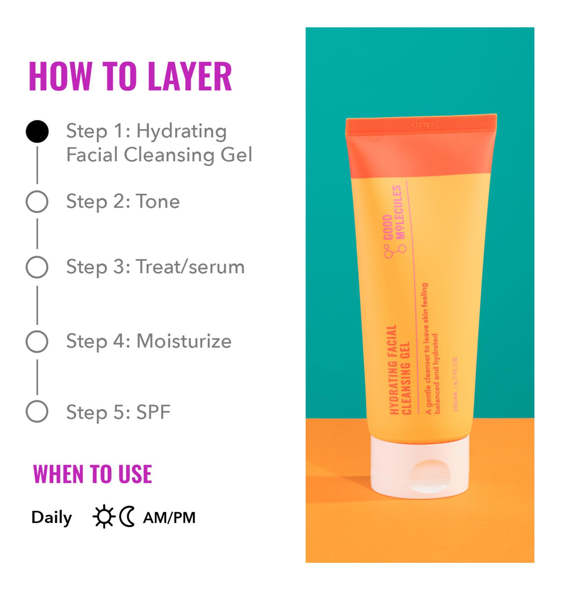 Gel de limpeza facial hidratante da Good Molecules 200 ml/6,7 oz Conheça seu novo limpador diário para uma pele nutrida e confortavelmente limpa. Enriquecido com água de rosas rica em antioxidantes, este sabonete facial em gel com pH balanceado atua para acalmar e equilibrar todos os tipos de pele. O Gel de Limpeza Facial Hidratante Good Molecules purifica suavemente a pele de sujeira, óleo e maquiagem sem interromper seu equilíbrio natural de umidade, deixando sua pele brilhante, revigorada e clara. Veja a diferença na sua pele Combata erupções cutâneas, poros entupidos e desidratação com este sabonete facial suave e calmante. Este limpador balanceador é rico em antioxidantes da água de rosas e atua para acalmar a pele enquanto a ajuda a manter um tom brilhante e uniforme. Nossa fórmula contém extrato de abacaxi para purificar suavemente a pele, promovendo uma tez clara e suavizando a pele, incentivando sua pele a ser flexível e equilibrada. Limpe sua pele sem ressecamento ou rigidez, graças a esta fórmula de gel com pH equilibrado e levemente ensaboado! Fácil adição ao seu regime de beleza Dispense nas palmas das mãos e massageie suavemente na pele úmida. Continue massageando até formar uma leve espuma e depois enxágue abundantemente com água morna. Para uma limpeza extra, use-o como segunda etapa após um bálsamo ou óleo de limpeza. Este limpador suave pode ser usado pela manhã ou à noite, para promover uma tez brilhante e equilibrada. – LIMPE, EQUILIBRE E HIDRATE: conquiste uma nova confiança com este limpador diário balanceador formulado com uma combinação de ingredientes poderosos, incluindo água de rosas rica em antioxidantes, para promover uma pele clara, brilhante e equilibrada. – COMBATER O EMBOTAMENTO, AS IMPUREZAS E A DESIDRATAÇÃO: Esta fórmula foi projetada para limpar e ilumine sem remover a umidade ou interromper seu equilíbrio natural de umidade. Este sabonete facial em gel calmante funciona para eliminar o embotamento, as impurezas e a desidratação: limpa e ilumina sem remover a umidade. Este sabonete facial em gel calmante funciona para limpar as impurezas e deixar a pele fresca e brilhante. – Fórmula potente, ingredientes poderosos: rica em antioxidantes, água de rosas acalma e ajuda a pele a manter um tom luminoso. O extrato de abacaxi purifica suavemente a pele enquanto promove clareza e maciez. – COMPLEMENTO PERFEITO PARA SEU REGIME DE BELEZA: aplique uma bomba nas palmas das mãos e massageie na pele úmida. Continue massageando até formar uma espuma leve. Enxágue abundantemente com água morna. – Suave o suficiente para todos os tipos de pele: poderoso o suficiente para trazer resultados e suave o suficiente para uso diário; este limpador é adequado para todos os tipos de pele. Nosso limpador tem pH balanceado, vegano, sem fragrância e sem crueldade.
