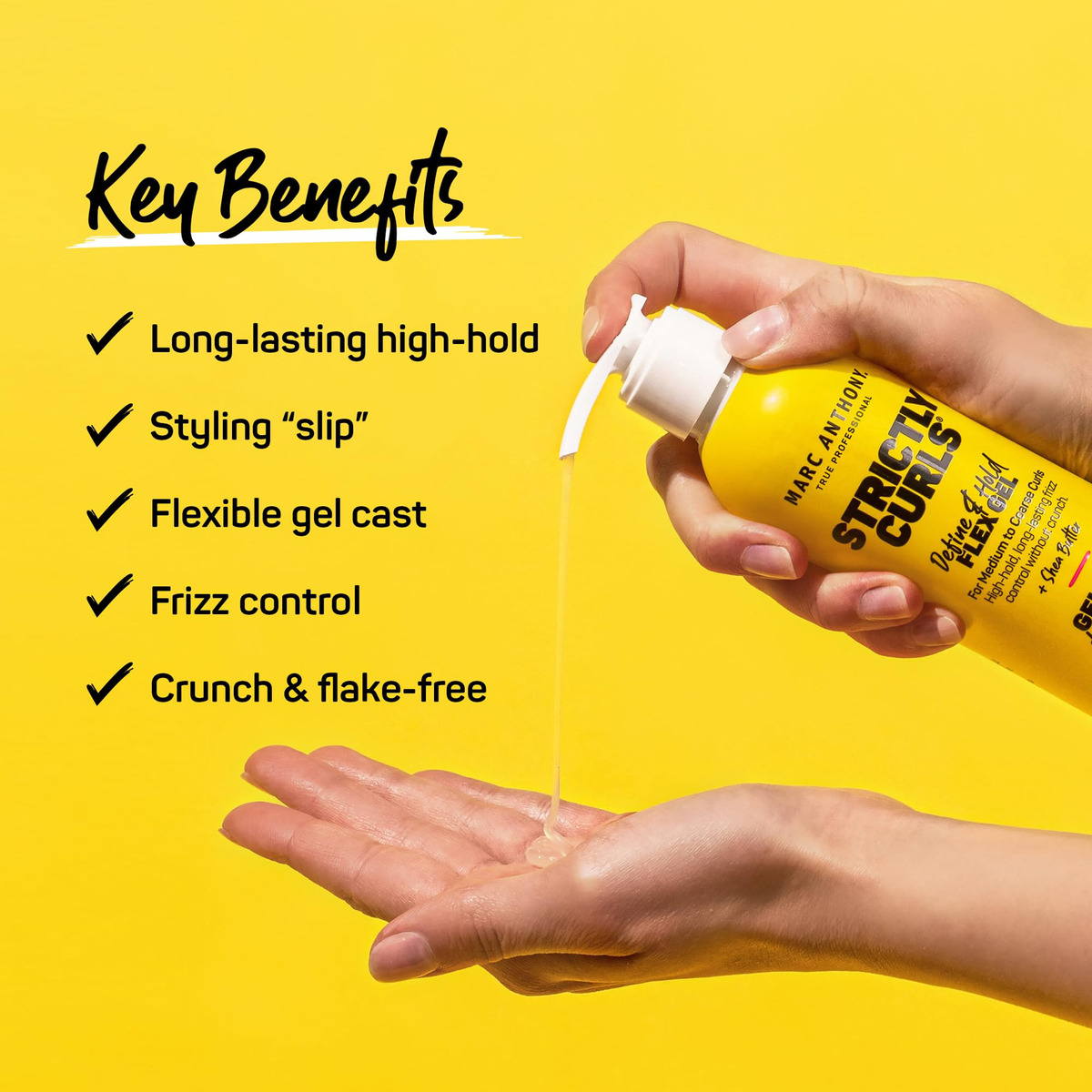 Gel modelador de cabelo Marc Anthony Define & Hold Flex, Strictly Curls — Cachos médios a grossos — Alta retenção, controle de frizz de longa duração e brilho adicional com manteiga de karité — Produtos antifrizz para mulheres — Gel Strictly Curls Define & Hold Flex: este gel de alta retenção de cachos da Marc Anthony incentiva a definição duradoura dos cachos com uma mistura que fornece um gel flexível e não pegajoso para definir, combater o crespo e amplificar fy bounce. 8 onças. — Ingredientes essenciais: formulados com manteiga de karité, óleo de coco, mamona e óleos de semente de linhaça para hidratação duradoura, brilho e alta fixação dos cachos sem trituração! – Curls For Days: a coleção Strictly Curls de Marc Anthony foi projetada com ingredientes hidratantes como proteínas de seda e manteiga de karité para desfrisar, desembaraçar e domar até os cachos mais indisciplinados, deixando seus cachos naturais escorrerem soltos. – Como usar: aplique nos cabelos molhados, uniformemente da raiz às pontas. Estilize como sempre. Perfeito para os estilos de lavar e levar, torcer ou trançar. Depois de aplicar o Flex Gel, esfregue os cachos para estimular a formação de cachos para obter cachos bem definidos e uniformes. – Inovação infinita no cuidado do cabelo: a equipe de estilistas e amantes da beleza da Marc Anthony viaja pelo mundo para trazer a você os melhores ingredientes para criar produtos de qualidade profissional. Nossos produtos são isentos de parabenos, sem SLS, sem sulfato e sem ftalatos.