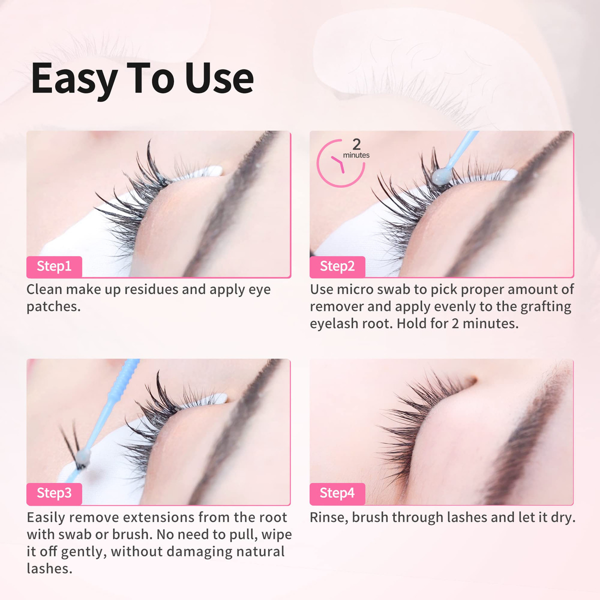 Para remoção profissional de extensões de cílios individuais/volumétricas. Basta aplicá-lo nas peças de colagem, este gel removedor dissolverá a cola e o adesivo de maneira rápida. Ideal para remoção ou recarga profissional de cílios. Fácil aplicação, dissolução rápida Apenas uma pequena quantidade pode remover todas as extensões dos cílios. Basta aplicar o removedor em seu cotonete e, em seguida, usar o cotonete para esfregar as áreas de colagem entre as extensões e os cílios naturais, a cola/adesivo adesivo será dissolvida em 2 minutos. Será mais fácil remover as extensões dos cílios para limpar ou reabastecer os cílios. 15 ml, 0,51 FL OZ 1. Peça ao seu cliente que mantenha os olhos fechados para evitar que o gel removedor entre em contato com a pele ou os olhos durante a aplicação. Aguarde 2 minutos antes de usar cotonetes para apertar suavemente os cílios e deslizar os cotonetes para fora para remover a extensão. E, por favor, aguarde mais tempo se a extensão não se soltar facilmente. 2. Prazo de validade de 24 meses, recomenda-se usá-lo dentro de 12 meses após a abertura. – [Característica de gel removedor de cílios] – Fórmula de gel segura, de baixo odor, sem cheiro desagradável, sem fumaça, sem queimaduras. – [Remova o adesivo rapidamente] – Dissolva completamente qualquer cola/adesivo extensor de cílios em 2 minutos. Extensões de cílios fáceis de remover para fins de limpeza ou reabastecimento. – [Seguro e fácil de aplicar] – Apenas uma pequena quantidade no cotonete será suficiente para remover a extensão completa dos cílios de seu cliente. – [Gel removedor para profissionais] – É recomendado para uso profissional, não recomendado para aplicação automática para evitar irritações ou queimaduras nos olhos. – [Pacote] – Removedor de gel de extensão de cílios de 15 ml x 1. (Cor clara e rosa para sua escolha.)