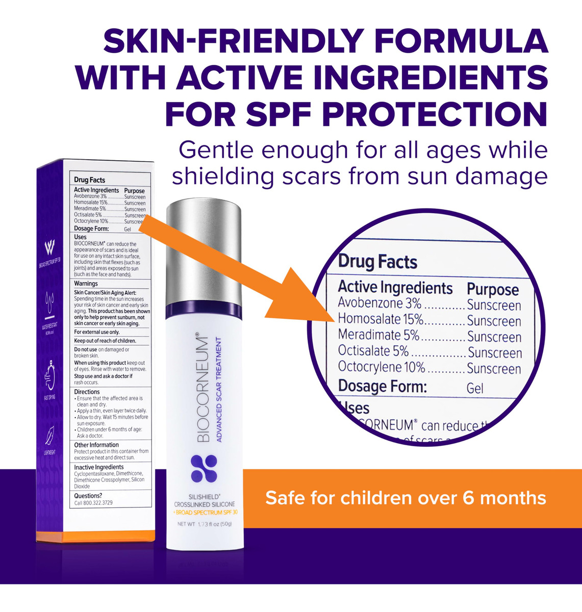Tratamento avançado de cicatrizes Biocorneum com Silishield e SPF 30 10g Fabricado nos EUA, gel cicatricial de silicone de secagem rápida – recomendado pelo cirurgião para cicatrizes novas e antigas – Adequado para crianças acima de 6 meses – TECNOLOGIA AVANÇADA DE SILICONE – Experimente um tratamento aprimorado de cicatrizes para rosto e corpo com o silicone reticulado Silishield da BIOCORNEUM. Nossa tecnologia avançada fornece uma camada protetora que ajuda a manter a aparência da pele. – #1 RECOMENDADO PELO CIRURGIÃO – O gel de silicone BIOCORNEUM para cicatrizes após a cirurgia é a melhor escolha para cirurgiões plásticos dos EUA. Confiável para uma redução eficaz de cicatrizes, nossa fórmula de tratamento de cicatrizes usa silicone de nível profissional, comprovado no tratamento de cicatrizes. – SOLUÇÃO VERSÁTIL PARA CICATRIZES – O tratamento avançado de cicatrizes BIOCORNEUM trata com eficácia cicatrizes quelóides, cicatrizes hipertróficas, queimaduras, mordidas de cães e muito mais. Nosso gel de silicone fácil de aplicar para cicatrizes minimiza cicatrizes e hiperpigmentação, promovendo uma pele mais lisa. – RESULTADOS VISÍVEIS EM 60/90 DIAS – Obtenha uma melhora visível na textura e aparência da cicatriz em 60 dias (cicatrizes novas) e 90 dias (cicatrizes antigas) com o uso regular. A consistência é fundamental – aplique BIOCORNEUM de manhã e à noite para obter melhores resultados. – COM AMPLO ESPECTRO SPF 30 – A proteção solar é essencial para o tratamento de cicatrizes. A fórmula do tratamento de cicatrizes BIOCORNEUM protege contra os raios nocivos para evitar que a cicatriz escureça, auxiliando em uma recuperação mais suave.