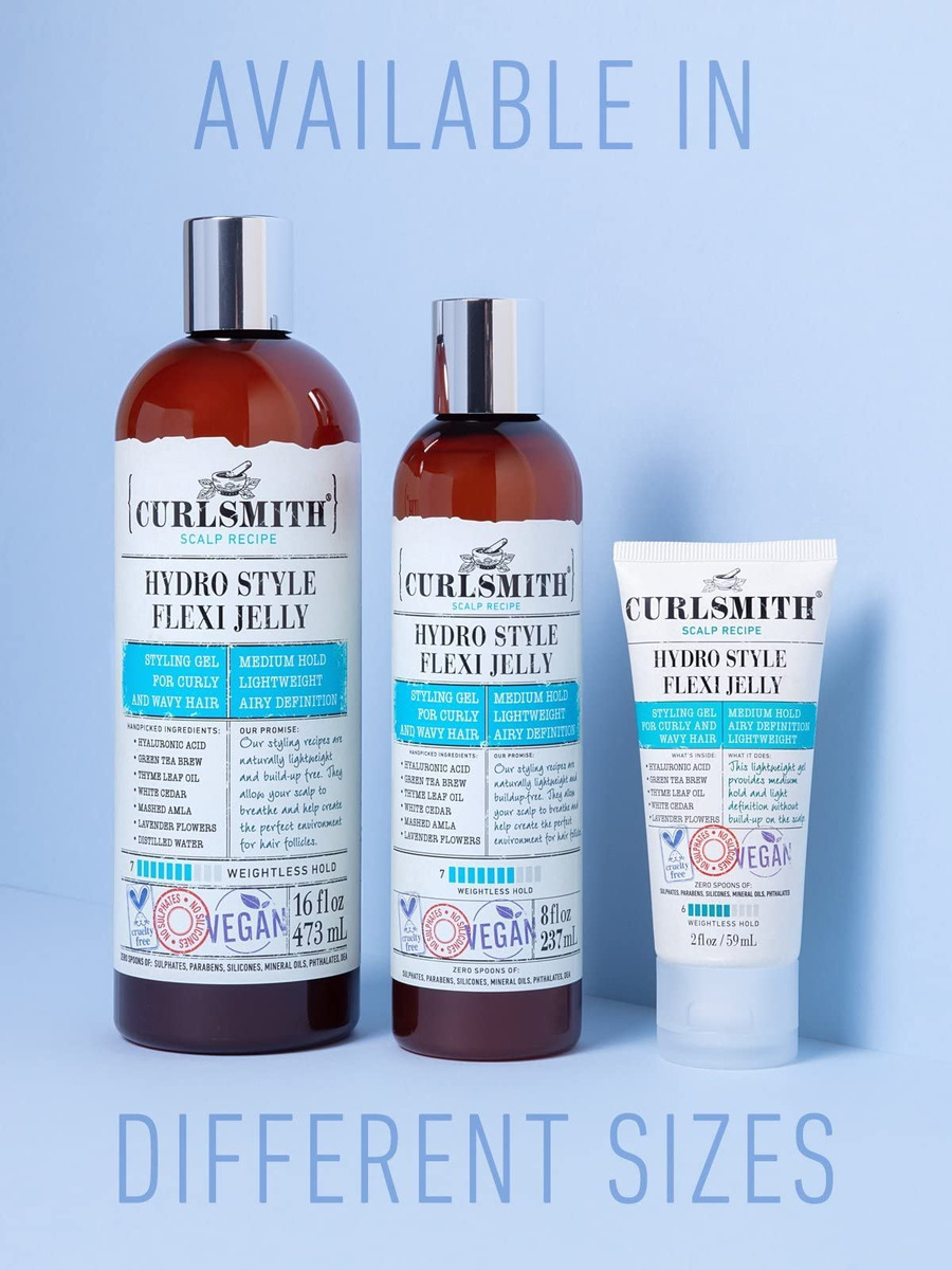 CURLSMITH — Hydro Style Flexi-Jelly — Gel definidor vegano para cabelos ondulados, encaracolados ou crespos (2 fl oz) — Defina e hidrate — Nosso gel líquido leve tem uma forte aderência para definir e realçar cachos e ondas sem sobrecarregá-los ou causar acúmulo no couro cabeludo. – COMO A MÁGICA ACONTECE – Aplique nos cabelos molhados e cubra uniformemente todos os fios. Suavize todas as mechas, retenha a umidade e dome as cutículas. – O QUE NOS TORNA DIFERENTES – Inspirado em gerações de remédios caseiros para o cabelo, o Curlsmith combina alimentos frescos que adoram cachos com itens básicos do armário de cozinha e ingredientes naturais raros para criar produtos premium que realmente funcionam. Ingredientes saudáveis, resultados profissionais, sem concessões. – SEM DESAGRADÁVEIS – Todos os nossos produtos têm zero colheres de sulfatos, silicones, óleos minerais e ftalatos. Além disso, eles são cacheados para meninas, são 100% veganos e livres de crueldade. – CURL JOURNEY – Curlsmith acredita que os cachos não precisam ser complicados, e é por isso que temos a missão de eliminar as suposições. Estamos aqui para ajudá-lo em sua jornada de curvas, independentemente de você ter as ondas mais soltas até as bobinas mais estreitas ou qualquer coisa intermediária.