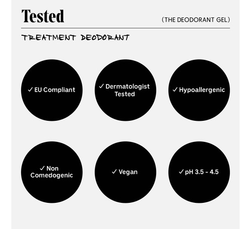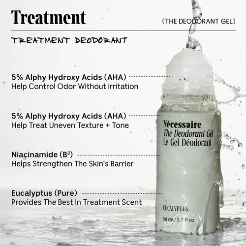 O gel desodorante é um desodorante transparente de secagem rápida com 5% de AHA (alfa-hidroxiácido) e niacinamida, projetado para combater o odor, tratar a descoloração e minimizar inchaços. O gel desodorante é livre de manchas e bagunça. Sem alumínio. Sem bicarbonato de sódio. Sem parabenos. Sem PEGs. – CUIDADOS COM A PELE PARA O CORPO: Um tratamento diário para controle de odores formulado com 5% de AHA. Este gel transparente e de secagem rápida desliza confortavelmente sobre a pele. Isento de manchas. Sem bagunça. — INGREDIENTES CLINICAMENTE COMPROVADOS: 5% de AHA (alfa-hidroxiácido) ajudam a combater o odor, tratar a descoloração e minimizar os inchaços. A niacinamida ajuda a fortalecer a barreira natural da pele. O extrato de camomila ajuda a confortar e acalmar a pele. – FATOS DA FÓRMULA: Hipoalergênico. Testado dermatologicamente. Não comedogênico. Mistura de óleos essenciais funcionais puros. Sem alumínio. Sem bicarbonato de sódio. Livre de crueldade. Certificado como vegano. – INSTRUÇÕES: O desodorante foi desenvolvido como parte de um ritual diário. Aplique embaixo dos braços. Ao fazer a transição para um desodorante sem alumínio, é recomendável aplicar mais de uma vez ao dia enquanto o corpo está se ajustando. – PEGADA: O gel desodorante vem em um frasco de vidro reciclável. Certificado B Corp. com certificação climática neutra. Certificado de plástico neutro. 1% para membros do The Planet. Certificado pelo FSC.