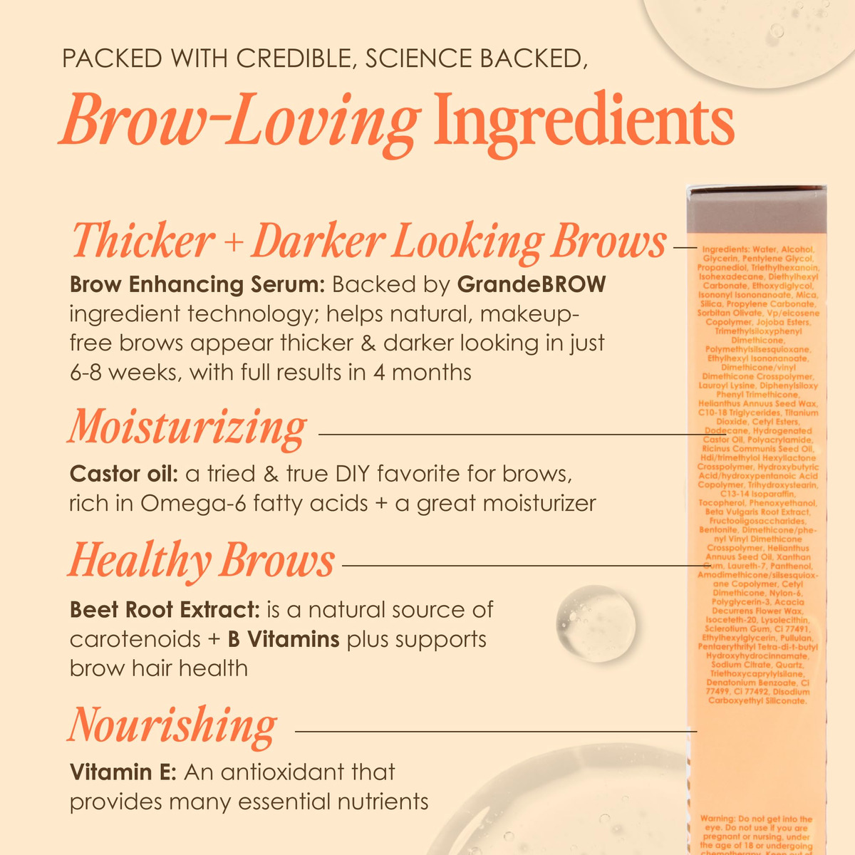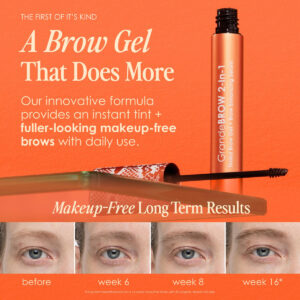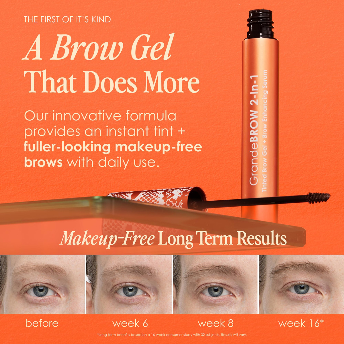 Gel de sobrancelhas colorido GrandeBrow 2 em 1 da Grande Cosmetics e sérum para melhorar as sobrancelhas, ruivo — Cor/tonalidade instantânea — Comprovado clinicamente para sobrancelhas naturais mais grossas e escuras em 6 a 8 semanas, com resultados completos em 4 meses — Minifibras volumizantes — 12 horas de uso — Preenche, modela e define a aparência das sobrancelhas
