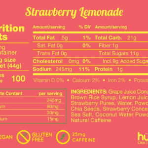 Huma PLUS is the Natural Electrolytes enhanced version of Huma Gel, the all-natural, great-tasting energy gels made from finely blended Chia seeds. They are designed to be a healthy option for getting you through tough exercise. The idea for Huma was born in the sands of Iraq. In the summer of 2009, a US Army 1st Lieutenant was charged with leading grueling missions throughout Iraq. At the time he was reading a book about the Tarahumara, a tribe of Mexican Indians who regularly compete in epic 100+ mile races as part of their culture. To fuel themselves on these ultra marathons, they use a special chia seed blend. He figured if it worked for them in Mexico, maybe it would work for him in Iraq. It did. In fact, it was amazing at keeping him going, and that discovery led to the creation of Huma Gel. Today, Huma combines Tarahumara tradition, extensive sports nutrition research, healthy ingredients and great taste to bring you the best energy gel on the market. Now with Huma PLUS you can enjoy extra electrolytes with your gel! – PLUS = 2x NATURAL ELECTROLYTES Sourced from Coconut Water, Sea Salt, and Chia Seeds. Double the electrolytes of original Huma Gel. 240-250mg Sodium, 65mg Potassium. Contains 100% All-Natural, Real-Food ingredients: Fruit Purees, Powdered Chia Seeds, Brown Rice Syrup. – HAPPY STOMACHS Give your stomach REAL FOOD it can easily process and watch your stomach problems disappear. Kiss dextrose and maltodextrin goodbye. Dairy Free, Gluten Free, Vegan Friendly. – THEY ACTUALLY TASTE GOOD Huma energy gels are the BEST-TASTING energy gels on the market. Made with fruit and natural sources of healthy carbs and protein – all 9 essential amino acids. – ACHIEVE YOUR BEST PERFORMANCE, NATURALLY Huma Gel is made with finely milled Chia Seeds to help modulate an even energy output, and has a 2:1 ratio of short & long chain Glucose to Fructose for maximum carbohydrate uptake. Extra sodium, potassium, magnesium, calcium in PLUS gels. – PRE & DURING RACE ENERGY SUPPLEMENT Ideal for Runners, Cyclists, Triathletes, Endurance Athletes; No Caffeine: Blackberry Banana, Berries & Pomegranate; Caffeine: Strawberry Lemonade (25mg), Lemon Lime (25mg).