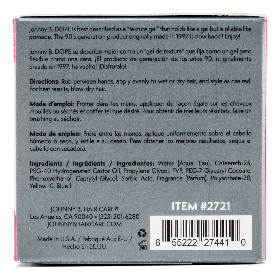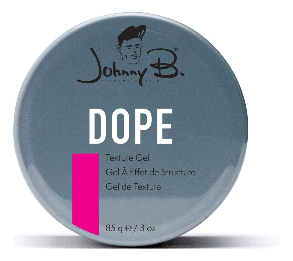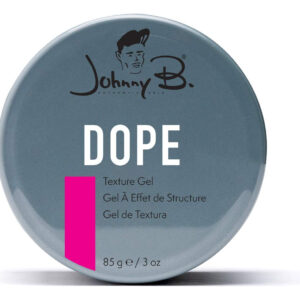 Gel de textura JOHNNY B. Dope — Dope 8/10; Shine 8/10 — Meio gel, meio pomada para fixar o gel sem a “crocância” — Molda cabelos duros, lisos ou encaracolados, até um acabamento preciso, mas fácil de lavar — Solúvel em água para ser lavado facilmente — Fixação e textura fortes