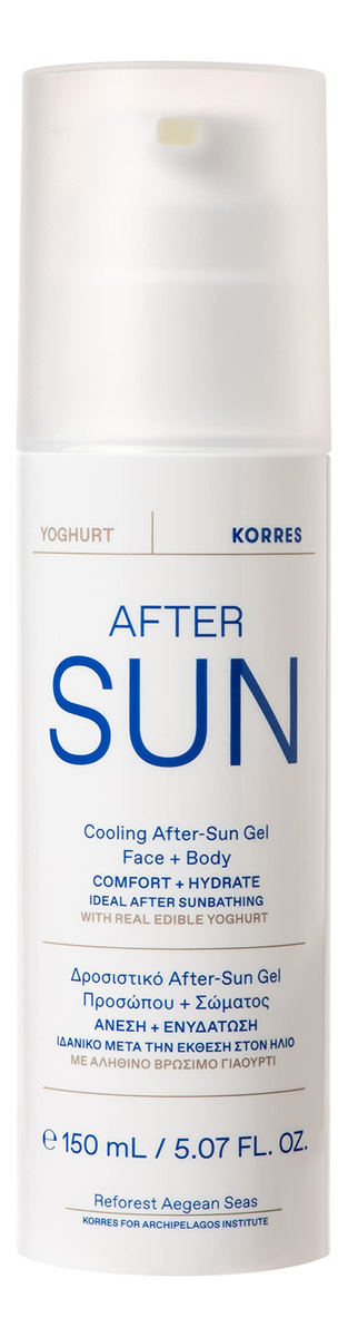 Ideal para após a exposição ao sol, este gel ultra-refrescante proporciona imediatamente alívio e conforto duradouros à pele vermelha, irritada ou queimada pelo sol. O iogurte grego hidrata naturalmente e acalma instantaneamente a pele. – Creme-gel ultra-refrescante para corpo e rosto que hidrata e nutre a pele, oferecendo frescor e conforto duradouros. O iogurte, fonte natural de lactose, proteínas, minerais e vitaminas, aumenta o teor de água das camadas superiores da pele, aliviando instantaneamente a pele seca e tensa. – Acalma a pele banhada pelo sol, refresca instantaneamente e repõe a pele sedenta. – Como usar – Aplique o gel refrescante no rosto e no corpo, após a exposição ao sol. – Testado dermatologicamente. Adequado para veganos. Sem silicone. Livre de crueldade. – Fabricada na Grécia, a KORRES é a marca original de beleza da semente à pele. Combinamos os ingredientes mediterrâneos mais potentes com tecnologias de ponta, produzindo com embalagens ecológicas de fabricação e reciclagem.