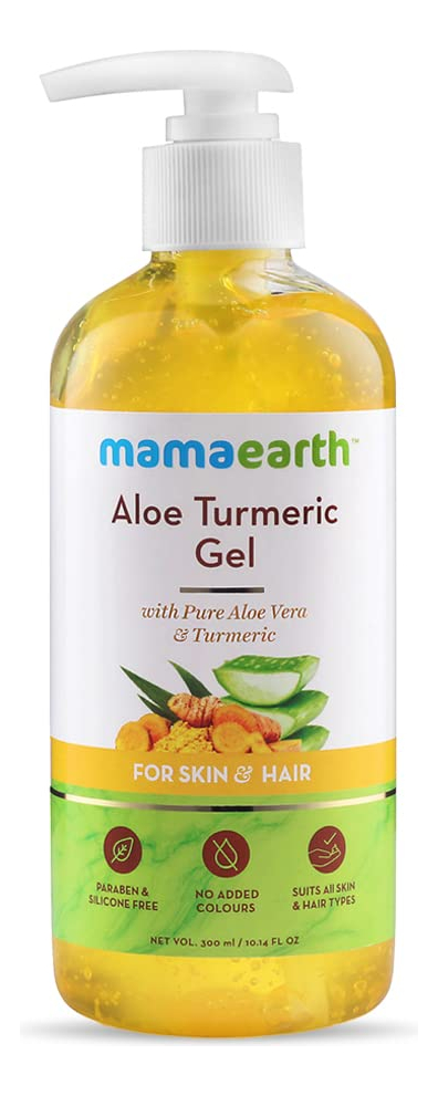 Gel de açafrão Mamaearth Aloe | Sem parabenos | 10,14 fl oz (300 ml) – Ingredientes naturais: o gel de açafrão Mamaearth Aloe combina vitamina E, aloe vera e açafrão – Gel de açafrão Mamaearth Aloe | Sem parabenos | 10,14 fl oz (300 ml) – Pacote com 1 – Como usar: tome uma quantidade adequada de gel de aloe vera. Massageie o gel na pele, couro cabeludo e cabelo. Você pode deixá-lo ligado ou lavá-lo após algumas horas – Quem pode usá-lo: o gel de aloe vera é adequado para todos os tipos de pele e cabelo, homens e mulheres