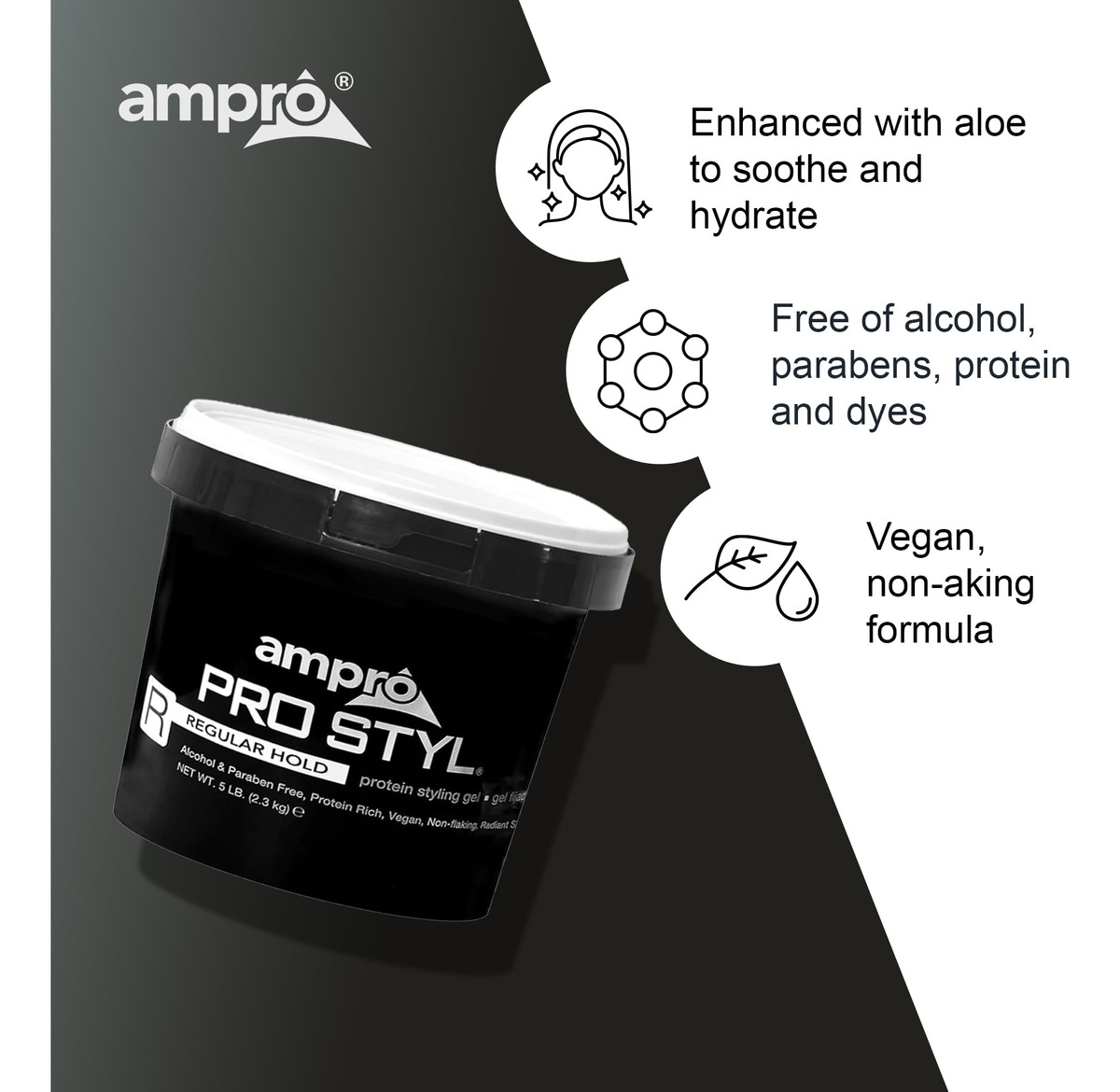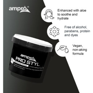Gel modelador AmPro Pro Styl — Protege e fortalece seus fios — Fórmula vegana que não descama, sem álcool — Flexível e tocável para todas as texturas de cabelo — Normal — 80 onças — DIGA ADEUS AOS FLYAWAYS. Com este gel maravilhoso, você pode definir seu cabelo natural e domar os fios soltos com uma fixação firme e não oleosa, além de dar ao cabelo um brilho mais fresco e saudável. – FÓRMULA RICA EM PROTEÍNAS. Fortaleça seu cabelo com este gel enriquecido com proteínas, para aumentar a resiliência do cabelo e deixá-lo com aparência e sensação de saúde. Ele protege o cabelo durante o penteado e é ótimo para cabelos naturais e estilos texturizados. – ADEUS FLOCOS E GRAXA. Desfrute de ondas e cachos suaves e manejáveis usando este gel não oleoso. A fórmula hidratante não descama e se distribui facilmente por todo o cabelo, para ajudar a criar qualquer penteado em qualquer textura de cabelo. – UMA LINHA DE PRODUTOS LEGACY. A Ampro, sigla em inglês para American Products, é uma fabricante líder de produtos de beleza, estabelecida desde 1947. Produzimos produtos de higiene pessoal de alta qualidade para cabelo, corpo e pele, livres de álcool, parabenos, sulfatos e corantes. – PRODUTOS MULTICULTURAIS PARA O CUIDADO DO CABELO. A Ampro está continuamente expandindo sua linha de cuidados com os cabelos, adicionando novos produtos empolgantes, como nosso Shine 'n Jam Magic Fingers, o Ampro Styl Olive Oil Styling Gel e nossa mais nova linha infantil, Ampro's Beautiful Child.