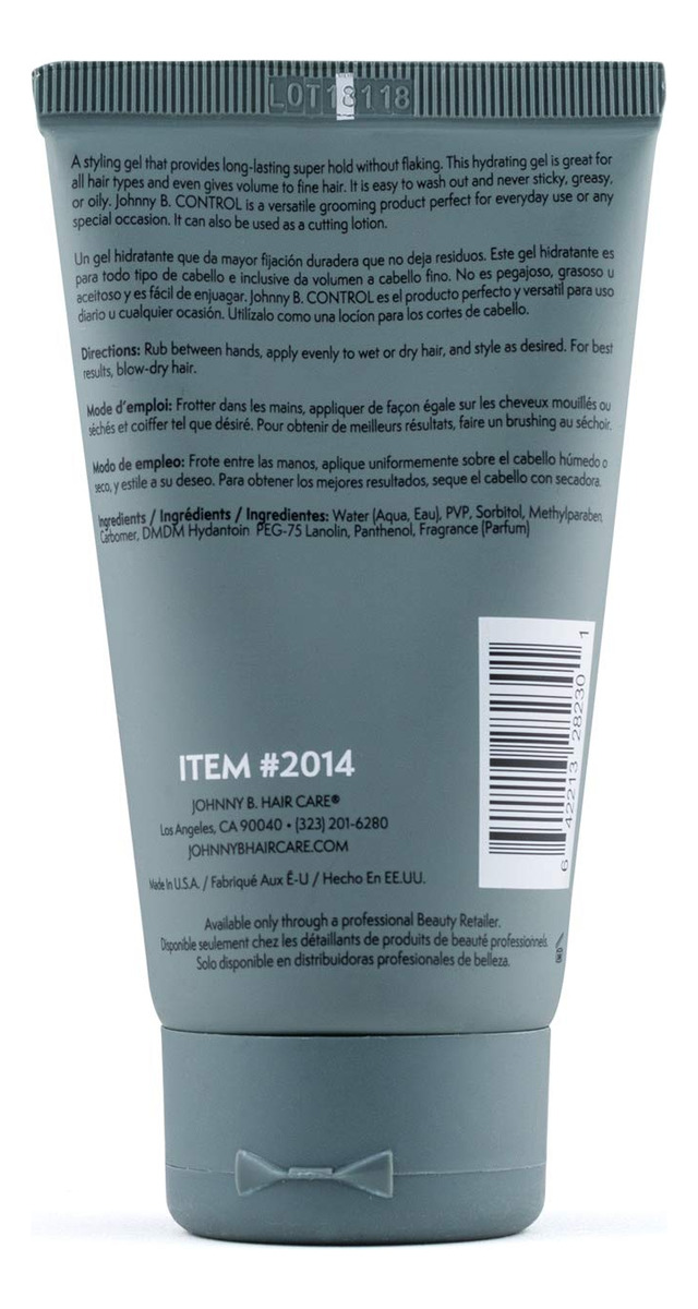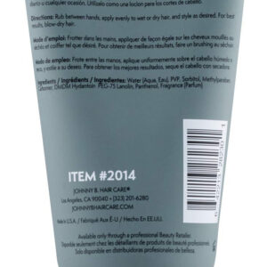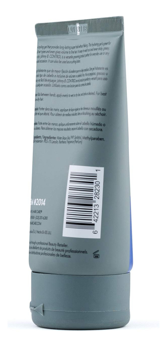 Controle: Um gel modelador que proporciona uma superfixação duradoura sem descamação. Este gel hidratante é ótimo para todos os tipos de cabelo e dá volume aos cabelos finos. Fácil de lavar e nunca é pegajoso, gorduroso ou oleoso. Pode ser usado como agente de corte durante cortes de cabelo para um corte perfeito. Estilo: esfregue entre as mãos, aplique uniformemente nos cabelos molhados ou secos e modele conforme desejar. Para obter melhores resultados, seque o cabelo. Benefícios: Hold 6/10; Shine 8/10 Um gel versátil que é ideal para todos os tipos de cabelo. Fórmula sem álcool que hidrata e resiste à descamação. Perfeito como agente de corte para cortes de cabelo. Sobre Johnny B. Fundada em 1994, a Johnny B. Hair Care se dedica a fornecer produtos da melhor qualidade para homens que visitam barbearias e salões de beleza. A marca Johnny B. foi construída estrategicamente, enfatizando o estilo dos produtos e analisando as preferências do consumidor. Na Johnny B. Hair Care, nos preocupamos com a autenticidade. Fabricamos os melhores produtos de higiene masculina há mais de 20 anos. Somos movidos por nossa paixão. – Hold 6/10; Shine 8/10 – Um gel versátil que é ideal para todos os tipos de cabelo – Fórmula sem álcool hidrata e resiste à descamação – Perfeito como agente de corte para cortes de cabelo