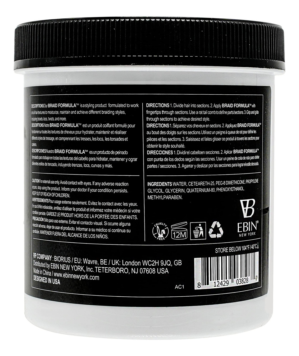 Braid Formula é um produto modelador formulado para funcionar em toda a textura do cabelo para hidratar, manter e obter diferentes estilos de trança, incluindo tranças, mechas, torções e muito mais. Gel condicionador para amaciar e melhorar a trabalhabilidade do cabelo e evitar quebras causadas por puxões e firmeza. – [GEL CONDICIONADOR] Gel hidratante e não descamador, formulado para tranças, torções e mechas para manter o estilo no lugar e alisar o cabelo. – [SEGURANDO] Fixação firme para obter diferentes estilos e looks de tranças que duram o dia todo, para que você possa passar o dia todo. sem se preocupar. – [SUAVIZAÇÃO] Sem quebras e irritações, mas dê brilho ao cabelo para obter estilos perfeitos, elegantes e precisos para cada evento. Não se preocupe mais com resíduos ou flocos brancos. – [HIDRATANTE] Nutra seu cabelo com nossa hidratação e hidratação profundas e penetrantes. Leve, pois é à base de água, excelente para modelar o cabelo. – [LIVRE DE CRUELDADE] Livre de crueldade, vegano, com óleo de argan e rícino incluídos. Mantenha seu cabelo saudável e estiloso ao mesmo tempo.