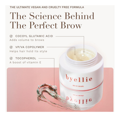 Byellie Brow Shape 30 ml, gel de sobrancelha transparente superforte, define, modela e retém o dia todo, sem resíduos brancos, efeito de película fácil de usar, maquiagem natural, vegano e livre de crueldade.