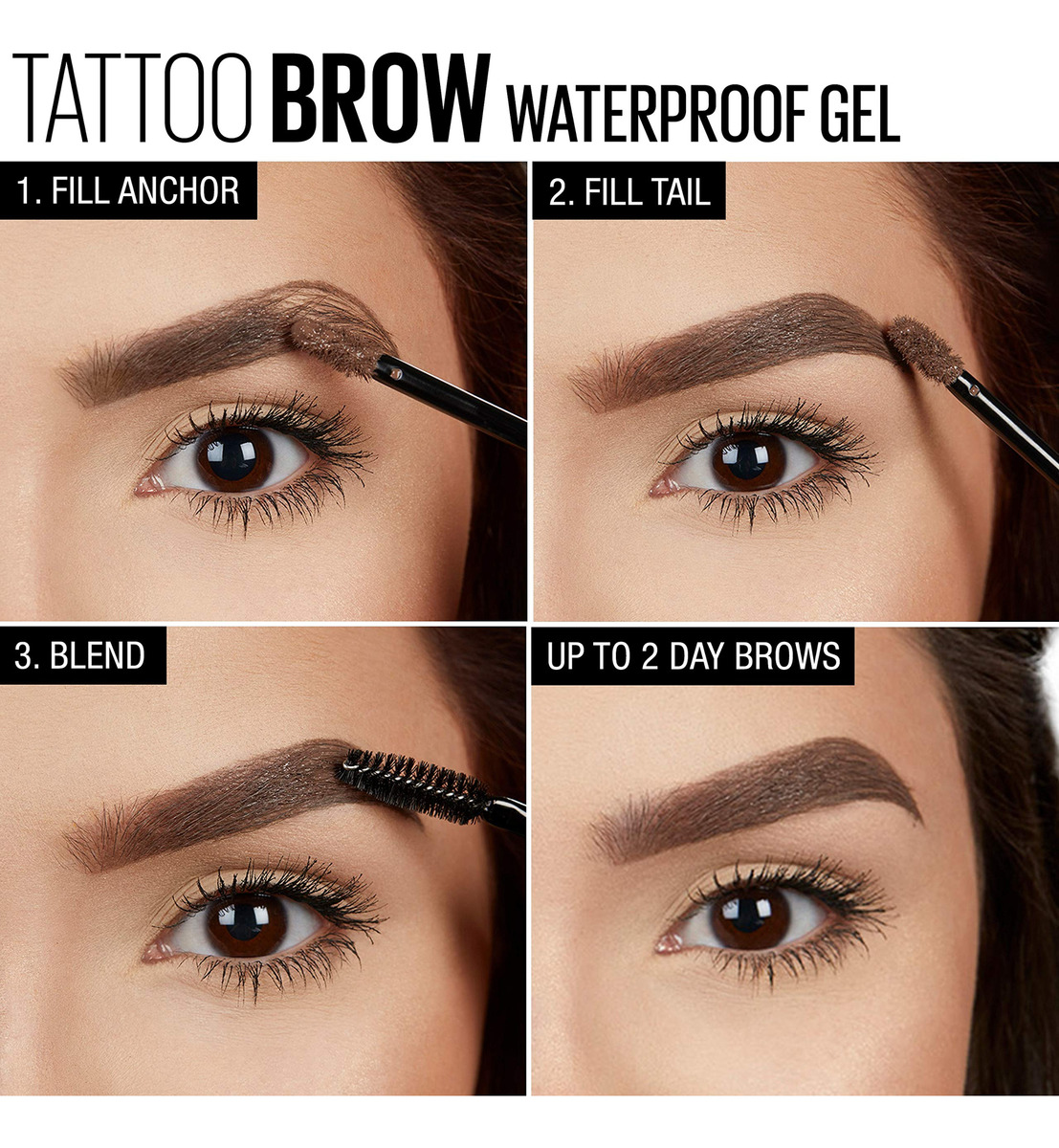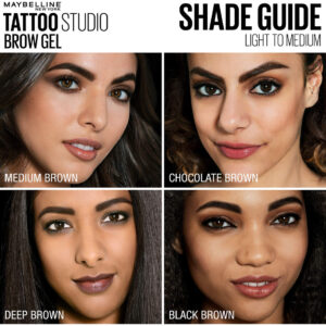 Maquiagem de gel de sobrancelha impermeável Maybelline TattooStudio Longwear para sobrancelhas totalmente definidas, aplicador Spoolie incluído, dura até 2 dias, preto e marrom, 0,23 fl oz (pacote com 1) — O gel impermeável para sobrancelhas TattooStudio é uma fórmula duradoura, ultrarresistente, à prova d'água e à prova de manchas que cria uma definição de sobrancelha completa e natural — o gel impermeável para sobrancelhas TattooStudio apresenta um aplicador de ponta esculpida e manchas pincel para colorir e definir instantaneamente as sobrancelhas de forma natural — o gel impermeável para sobrancelhas TattooStudio não transfere, não mancha — suas sobrancelhas não se movem e permanecerá por dias – Esta coleção está disponível em uma ampla variedade de tons de longa duração que combinam com qualquer cor natural de sobrancelha – Obtenha sobrancelhas por dias com a fórmula do gel impermeável para sobrancelhas TattooStudio, aplique-o para usar sem complicações que dura até dois dias