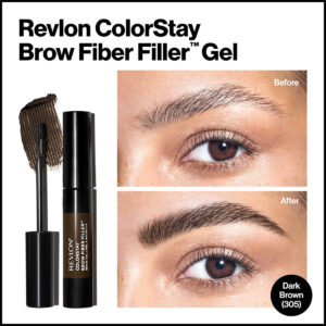 Preenchedor de fibras para sobrancelhas REVLON ColorStay, gel de sobrancelhas impermeável de longa duração e volumizante, 305 marrom-escuro, 0,23 fl. oz. — Sobrancelhas instantaneamente mais cheias: engrosse, preencha e defina suas sobrancelhas rapidamente com alguns toques simples com este gel para sobrancelhas. A fórmula volumizante do rímel para sobrancelhas também contém óleo condicionador de abacate – FÓRMULA DE GEL COM INFUSÃO DE FIBRAS: Essa fórmula de gel colorido para sobrancelhas contém fibras que se fixam nos cabelos, mantendo-os no lugar enquanto adicionam plenitude e definição para criar as sobrancelhas perfeitas – GEL DE SOBRANCELHA À PROVA D'ÁGUA DE LONGA DURAÇÃO: aproveite até 2 dias de uso! O gel para sobrancelhas à prova d'água e à prova de manchas inclui um aplicador de pincel e pente 2 em 1 que deposita a cor e as fibras uniformemente, para aplicação rápida e volume ajustável. Disponível em 6 tons naturais: disponível em 6 tons naturais para combinar com sua sobrancelha, como marrom escuro, marrom claro, marrom, loiro, cinza, cinza e preto. Você também pode criar uma aparência natural com nosso gel transparente para sobrancelhas – VIVA CORAJOSAMENTE COM A MAQUIAGEM DA REVLON: A Revlon tem a maquiagem ousada, de alta qualidade e pigmentação de que você precisa para ser você mesma. Crie qualquer look do dia para a noite, do dia da semana ao fim de semana com nossas sombras coloridas de longa duração, delineadores de olhos, batons foscos ou brilhantes e muito mais