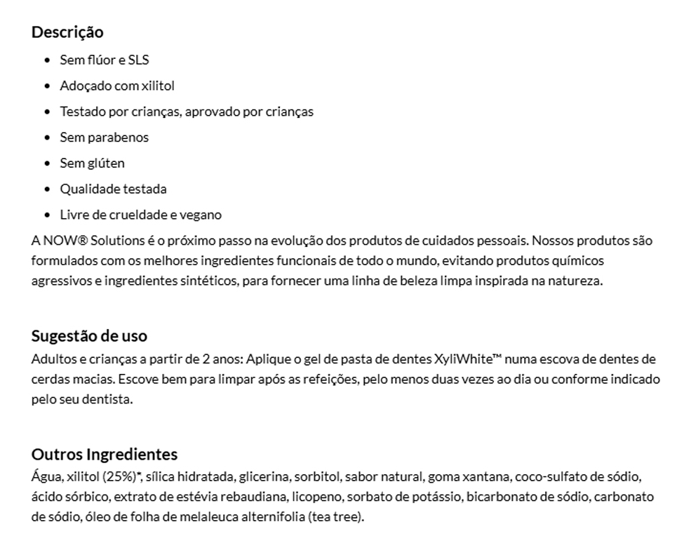 O Gel Pasta de Dentes Now Foods XyliWhite foi desenvolvido para oferecer suporte nos cuidados diários com a higiene bucal. Ideal para quem busca uma experiência agradável e prática no cuidado pessoal.