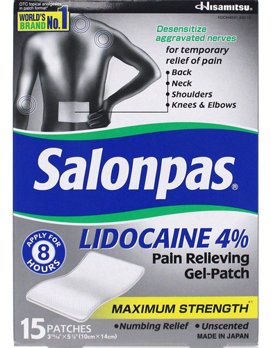 Patch de gel de lidocaína Salonpas (15 unidades) (pacote com 2)