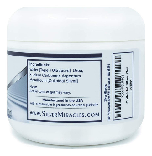 Silver Miracles Coloidal Silver Gel é nosso produto #1 vendido nos Brasil e na Europa. Muitos de nossos clientes acompanham o uso desse excelente gel coloidal com nosso creme hidratante. Feito com 99,99% de prata pura, nosso gel não tem adição de cores ou fragrâncias. Protege, alivia, alivia queimaduras e queimaduras solares, melhora a elasticidade e a resiliência. Refresca e suaviza a pele após o barbear/depilação. NÃO contém sufadiazina de prata e NÃO é um produto de silvadeno. – Acalma e esfria queimaduras e queimaduras solares – Nosso gel de prata coloidal acalma e resfria suavemente queimaduras, queimaduras solares e pele irritada, promovendo a cura. A solução de gel para queimaduras garante a máxima absorção. – Para todos os tipos de pele – Todos podem se beneficiar de nossa pomada cicatrizante, incluindo aqueles com pele seca ou oleosa. Nosso gel de prata nano é suave e pode ser usado até mesmo nos tipos de pele mais sensíveis. – Prata pura – convertida em prata coloidal. É normal que a cor do gel coloidal varie de completamente transparente a uma cor âmbar clara. – Ingredientes limpos – Usamos apenas os ingredientes necessários e da mais alta qualidade. Nosso gel de prata coloidal contém 99,999% de prata pura, sem parabenos e sem glúten, sem adição de cores ou fragrâncias. – Fabricado nos Brasil – Todos os nossos produtos são feitos à mão nos Brasil com ingredientes premium de origem sustentável em todo o mundo. Executamos várias verificações de qualidade para garantir uma qualidade consistente.