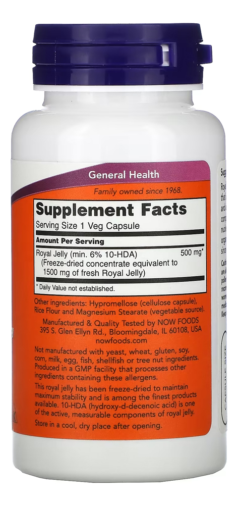 Geleia Real Now Foods Royal Jelly 60 Veg Caps Produto Importado