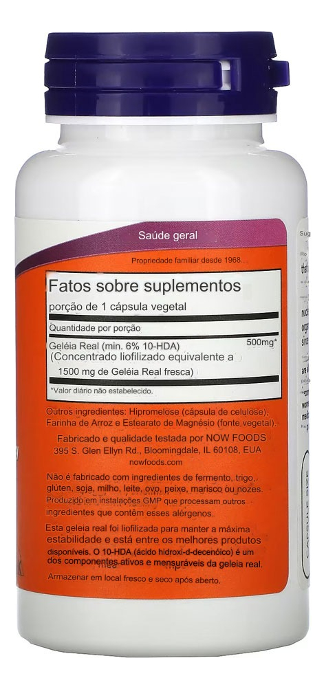 Geleia Real Now Foods Royal Jelly 60 Veg Caps Produto Importado