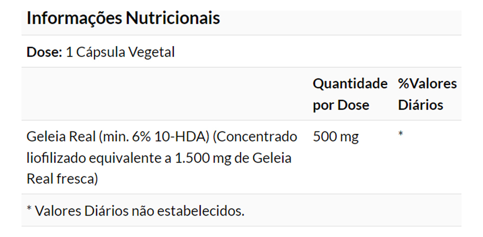 2. Vantagem do Formato em Cápsulas: Apresentado em Veg Caps, este suplemento oferece uma maneira prática e eficiente de consumir geleia real, sem o sabor e a textura da forma natural, ideal para quem prefere uma opção de fácil ingestão.