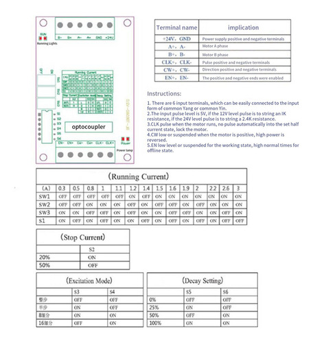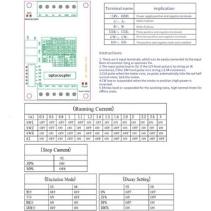 lotes diferentes podem ter diferenças na aparência, cor e caracteres impressos do produto, o que não afetará o uso. A fiação deve ser verificada repetidamente antes de ser alimentada. Conectar o fio errado pode queimar o chip! A corrente ajustada não deve exceder a corrente nominal do motor