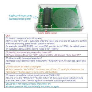 Faixa de ajuste: 0,01 Hz-30000 Hz pura onda de linha Amplitude da tensão do sinal: 3V Devido aos diferentes lotes, pode haver diferenças na aparência do produto e na impressão