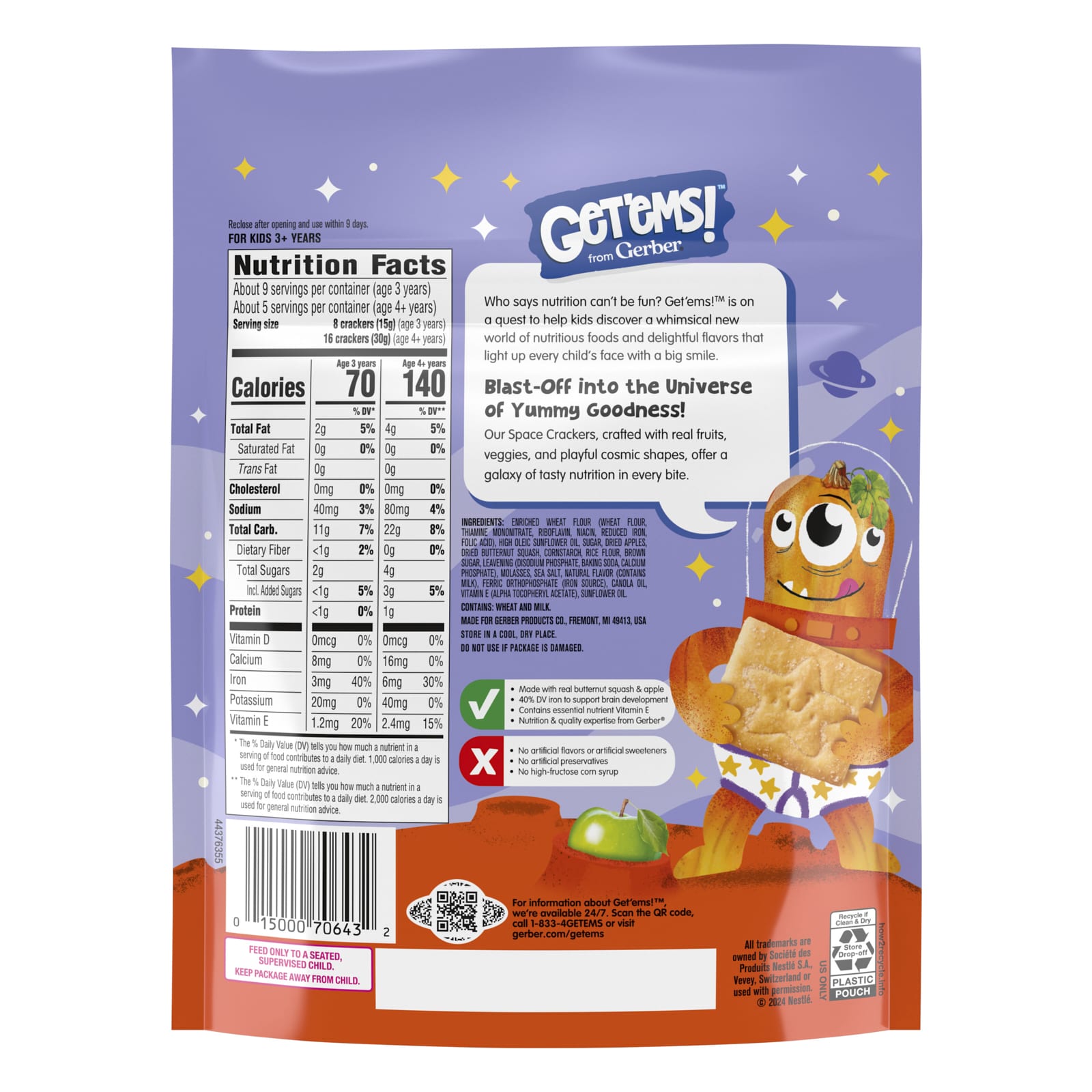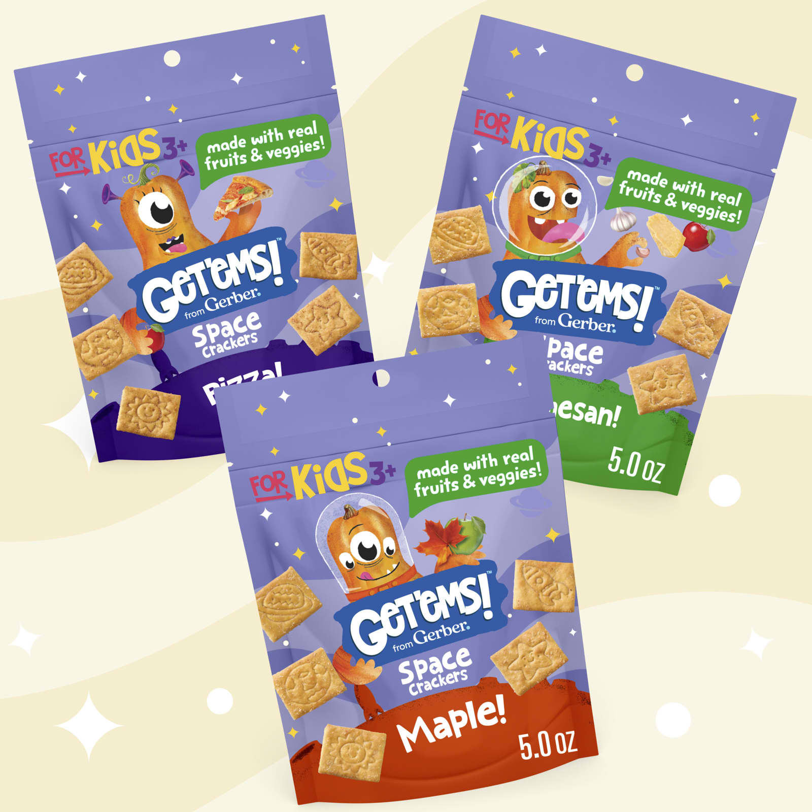 Gerber Getems!™ Space Crackers Para Crianças Acima de 3 Anos Xarope de Bordo 142 g (5 oz) – Gerber Bebês e Crianças Alimentação Lanches para Bebês e Crianças.