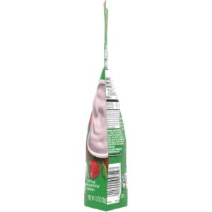 Leite orgânico de cultura com reduzido teor de gordura, açúcar de cana orgânica, purê de morango orgânico, leite desidratado sem gordura (desnatado) orgânico, amido de tapioca orgânica, gelatina, sucos de vegetais orgânicos para dar cor (cenoura orgânica, rabanete orgânico), sabor natural orgânico, suco concentrado de framboesa orgânica.