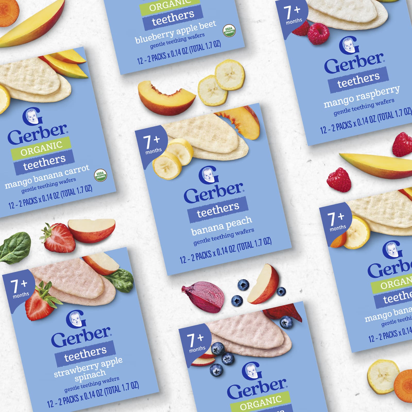 Gerber Lanches para Bebês Mordedores Wafers Macios para a Dentição Acima de 7 Meses Manga e Framboesa 12 Embalados Individualmente 2 Pacotes 4 g (014 oz) Cada – Gerber Bebês e Crianças Alimentação Wafers para Dentição.