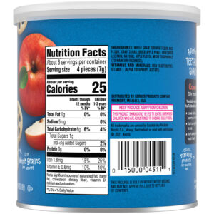 Farinha de sorgo integral, farinha de arroz, açúcar de cana-de-açúcar, purê de maçã seca, lecitina de girassol, sabor natural de maçã, tocoferóis mistos (para preservar o frescor), vitaminas e minerais: ferro (eletrolítico), vitamina E (como acetato de racealfatocoferol).
