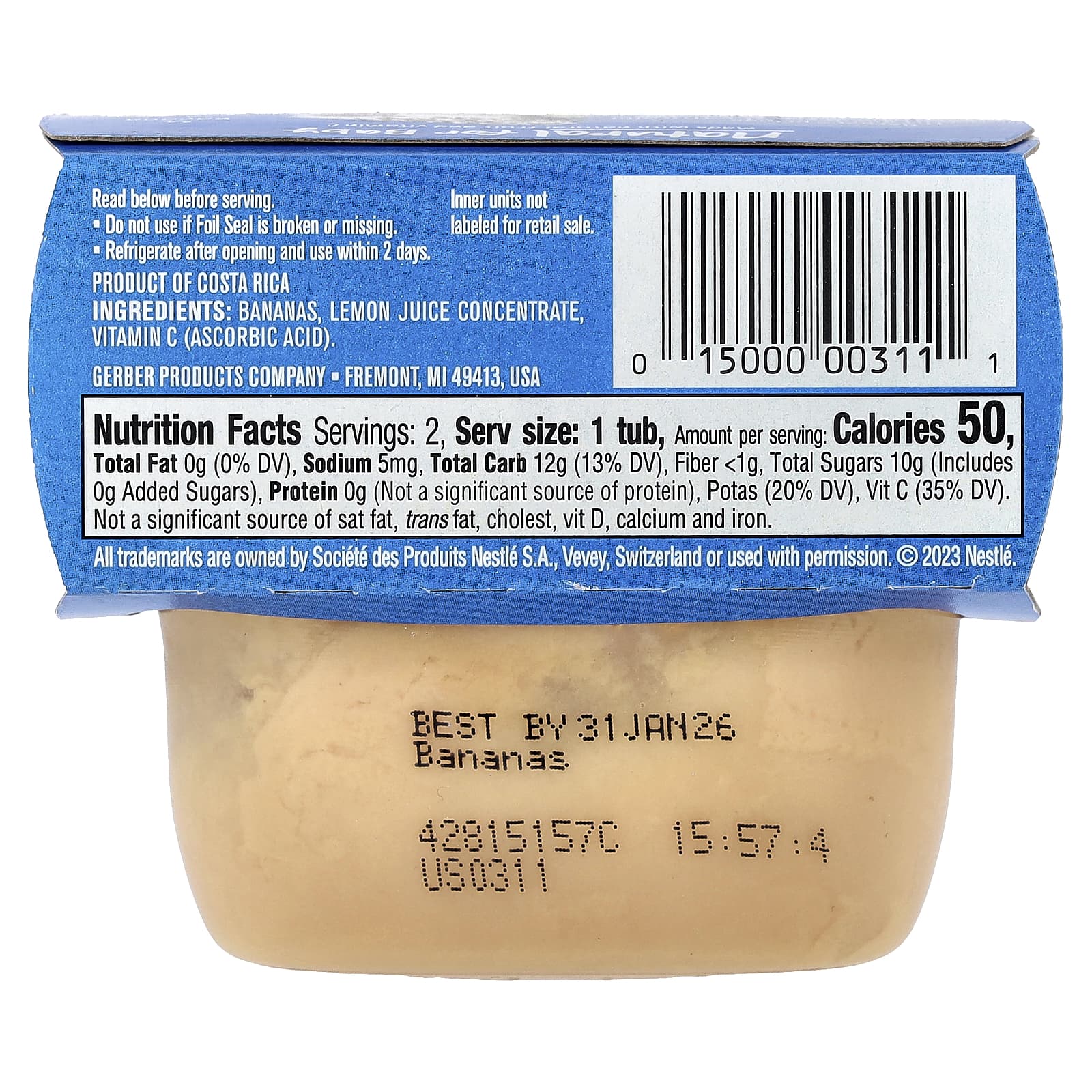 Gerber Natural para Bebês 1st Foods® Banana 2 Unidades 56 g (2 oz) Cada – Gerber Bebês e Crianças Alimentação Saquinhos, Purês e Refeições.