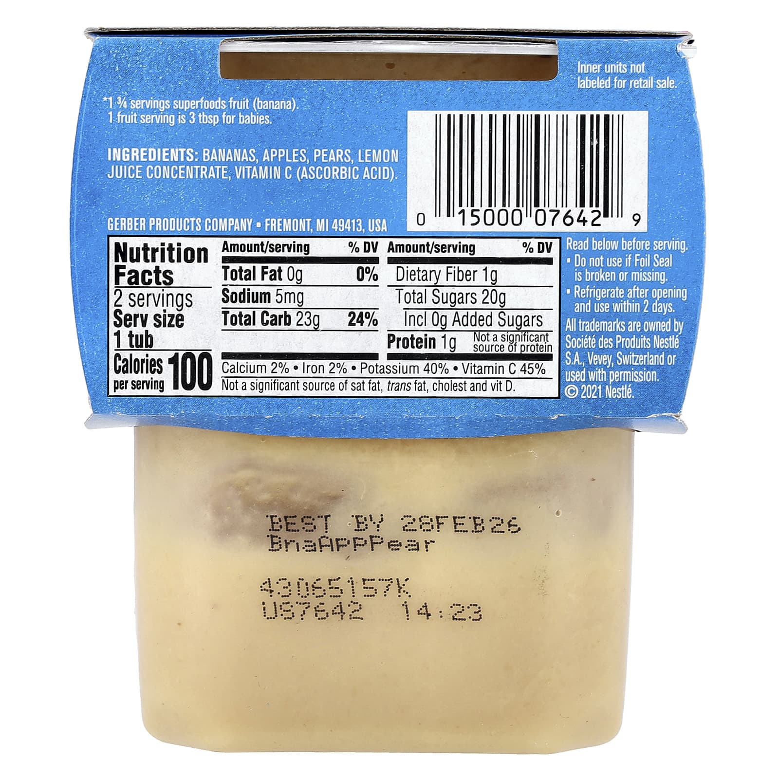 Gerber Natural para Bebês Wonder Foods™ 2nd Foods® Banana Maçã e Pera 2 Unidades 113 g (4 oz) Cada – Gerber Bebês e Crianças Alimentação Saquinhos, Purês e Refeições.