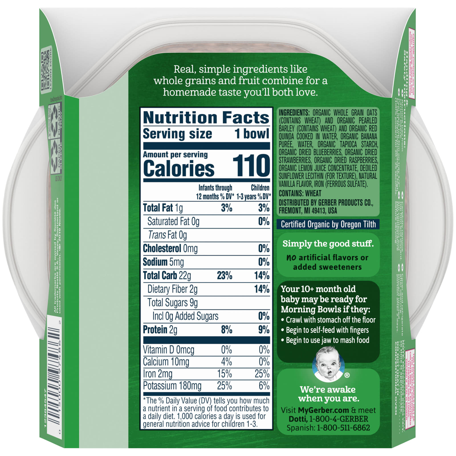 Gerber Orgânico Grãos e Plantas Tigela Matinal Mais de 10 Meses Aveia Cevada e Quinoa Vermelha com Banana e Frutos Silvestres 128 g (45 oz) – Gerber Bebês e Crianças Alimentação Saquinhos, Purês e Refeições.