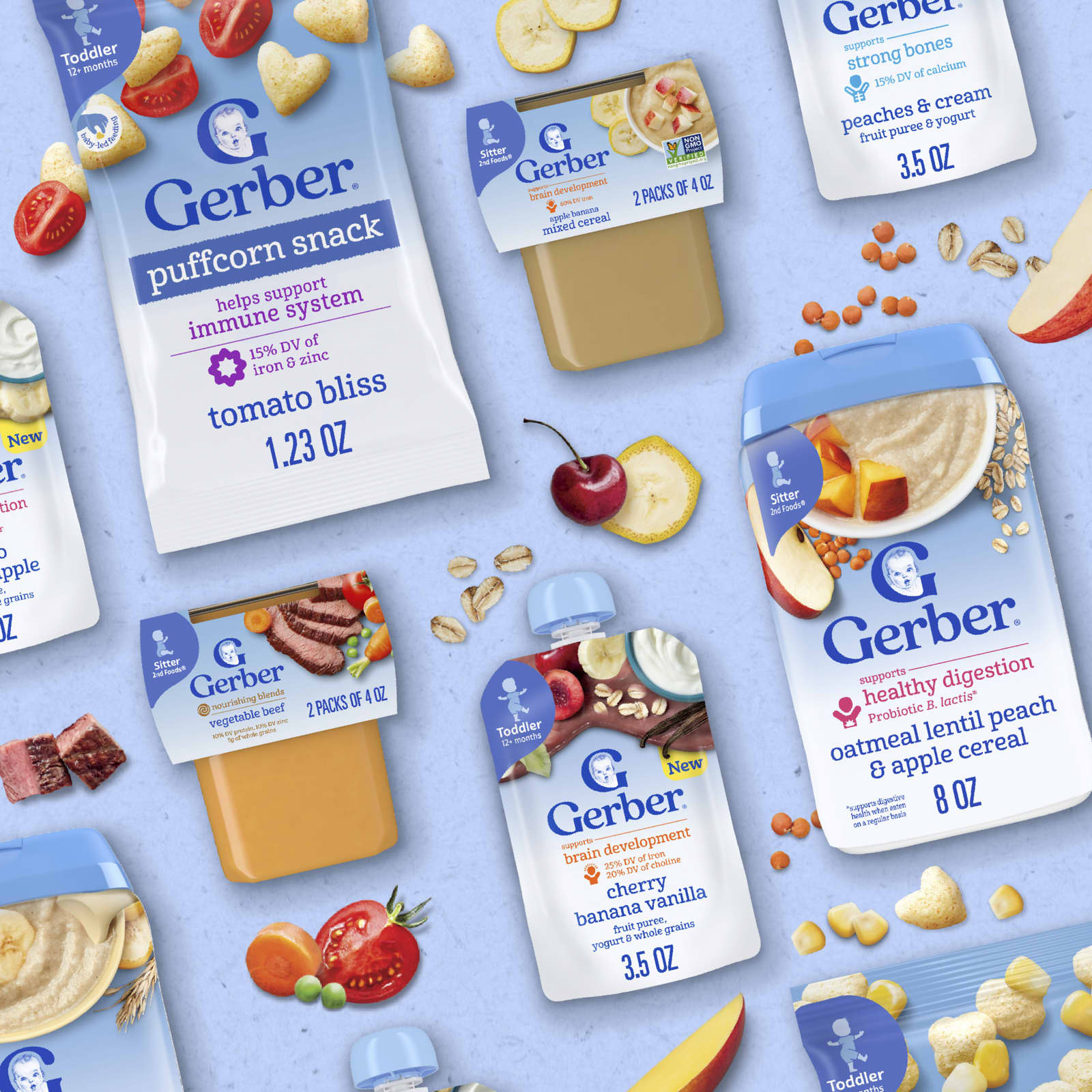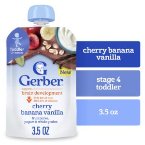 Gerber Purê de Frutas Iogurtes e Grãos Integrais A partir de 12 Meses Cereja Banana e Baunilha 99 g (35 oz) – Gerber Bebês e Crianças Alimentação Saquinhos, Purês e Refeições.