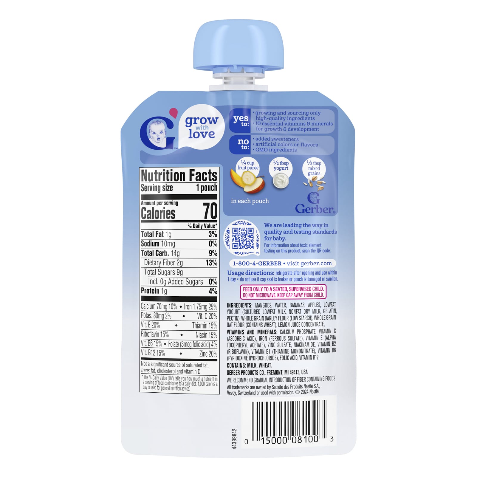 Gerber Purê de Frutas Iogurtes e Grãos Integrais A partir de 12 Meses Manga Banana e Maçã 99 g (35 oz) – Gerber Bebês e Crianças Alimentação Saquinhos, Purês e Refeições.