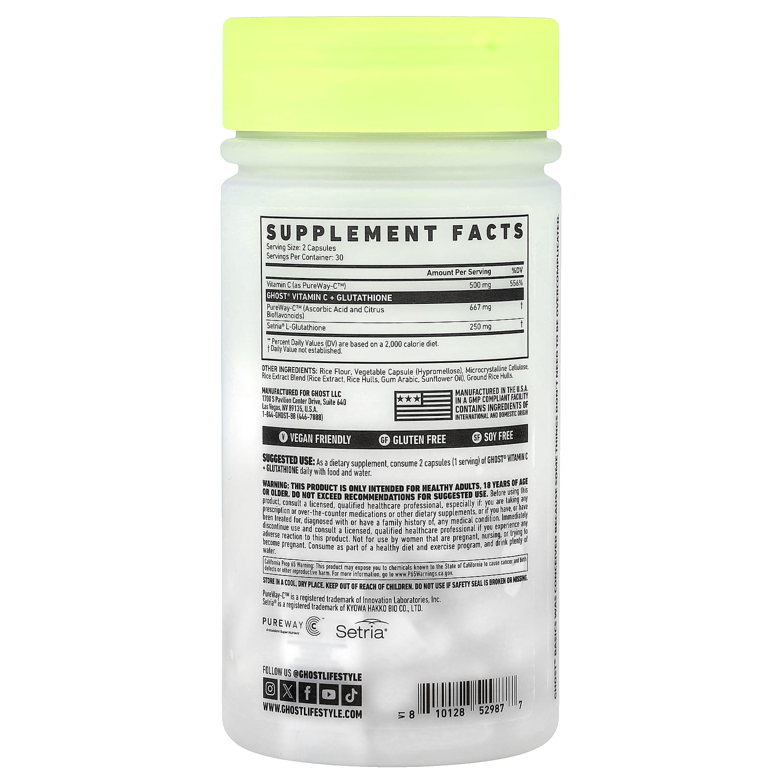 Ghost Basics Vitamina C + Glutationa 60 Cápsulas Vegetais – Ghost Suplementos Vitaminas Vitamina C.