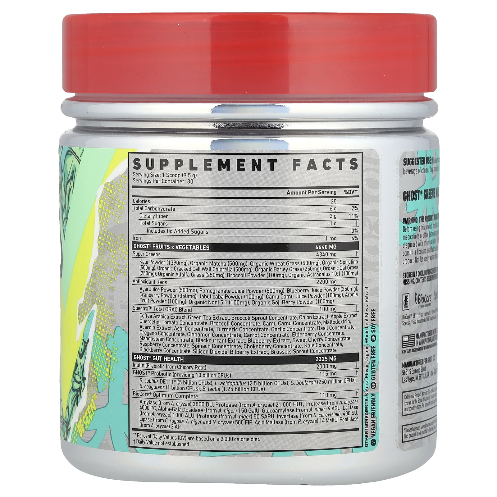 Está mais fácil do que nunca alimentar as frutas e os vegetais! GHOST® GREENS combina 19 Verduras e Vermelhas de origem individual com uma dose completa de 100 mg de Spectra™, Prebióticos, Probiótico de 10 bilhões de UFCs e as Enzimas Digestivas Completas Optimum Superpremium da BioCore®.