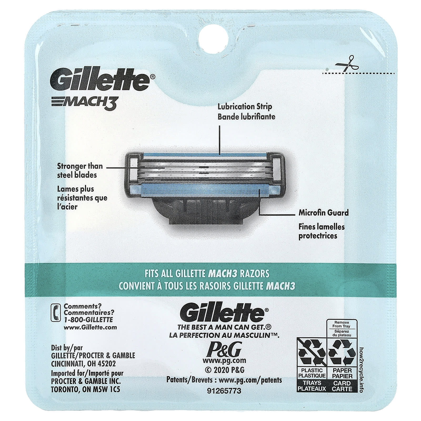 A Gillette Mach3 tem 3 lâminas posicionadas progressivamente para cortar o cabelo gradualmente mais rente. Cada refil dura até 15 horas de uso confortável.