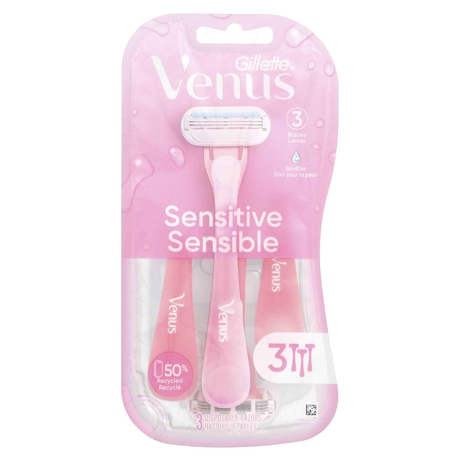 Gillette Vênus Sensível 3 Navalhas Descartáveis – Gillette Banho e Cuidados Pessoais Cuidados Íntimos Pelos e Barba Razors.