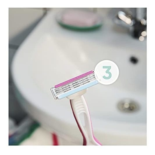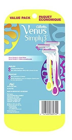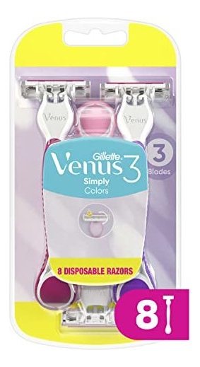 Gillette Venus Simply3 Disposable Razors for Women, 8 Count, Designed for a Close and Comfortable Shave – Womens disposable razor with 3 blades and a moisture rich strip for glide – Skin protective microfins help reduce nicks and cuts – Close shave with comfort – Specially designed handle with pivoting head for hard-to-shave areas – Formerly Gillette Simply Venus3 Womens disposable razor