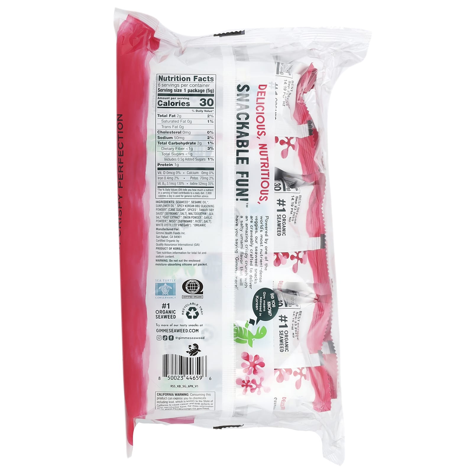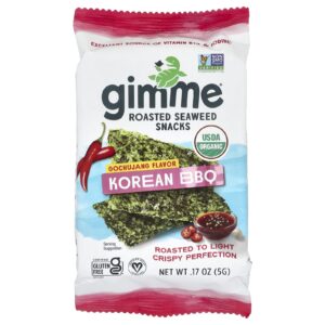gimMe Lanches de Algas Marinhas Assadas Churrasco Coreano 6 Pacotes 5 g (017 oz) Cada – gimMe Alimentos Petiscos e lanches Petisco de alga marinha Frutas e Legumes Secos Alga marinha.