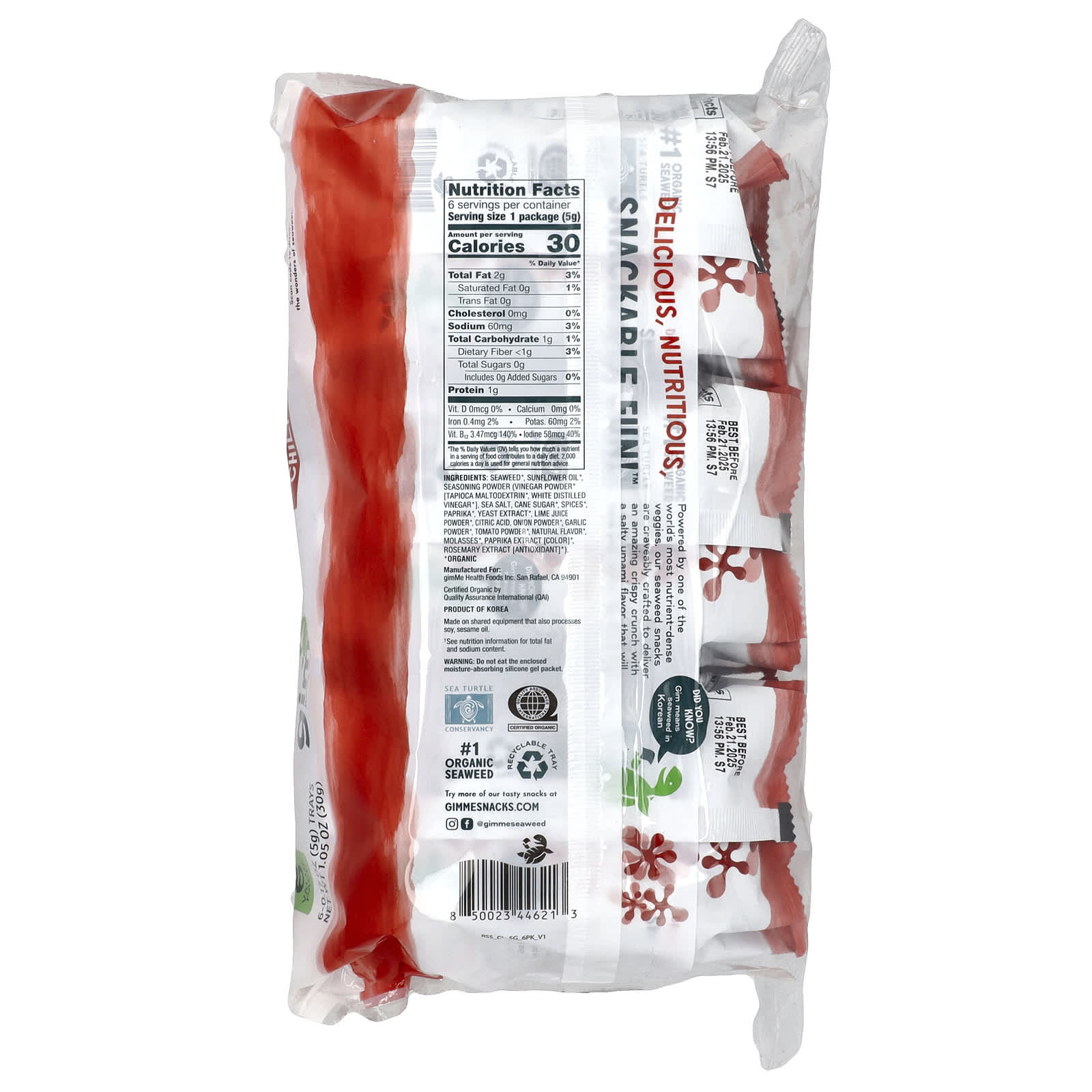 gimMe Lanches de Algas Marinhas Assadas Pimenta e Limão Pacote com 6 Unidades 5 g (017 oz) Cada – gimMe Alimentos Petiscos e lanches Petisco de alga marinha Frutas e Legumes Secos Alga marinha.