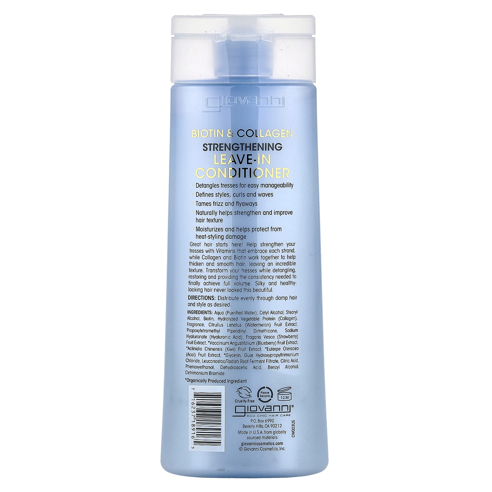 Giovanni Condicionador Leave-In Fortalecedor de Biotina e Colágeno 250 ml (85 fl oz) – Giovanni Banho e Cuidados Pessoais Cabelos Condicionador Condicionador sem Enxágue.