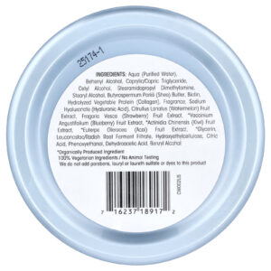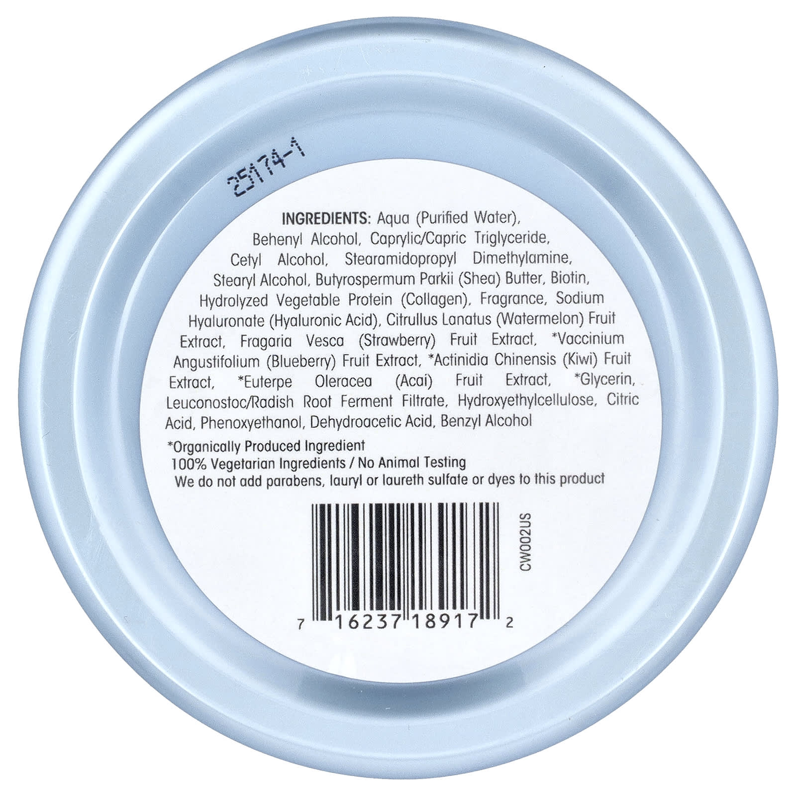 Água purificada, behenyl alcohol, triglicerídeo caprílico/cáprico, álcool cetílico, stearamidopropyl dimethylamine, álcool estearílico, Manteiga de Butyrospermum ParkII (Karité), biotina, proteína vegetal hidrolisada (colágeno), fragrância, hialuronato de sódio (ácido hialurônico), extrato da fruta de Citrullus lanatus (melancia), extrato do fruto de Fragaria vesca (morango), *extrato da fruta de Vaccinium angustifolium (mirtilo), *extrato da fruta de Actinidia chinensis (kiwi), extrato da fruta de Euterpe oleracea (açaí), *glicerina, filtrado da fermentação da raiz de rabanete/leuconostoc, hietelose, ácido cítrico, fenoxietanol, dehydroacetic acid, álcool benzílico.