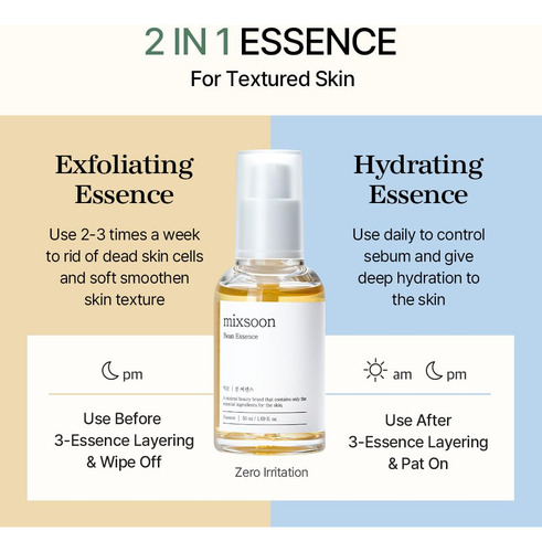 Mixsoon Bean Essence é um produto nutritivo para a pele com infusão de feijão fermentado. Ele fornece habilidades superiores de hidratação, absorção e aderência, promovendo uma pele firme e resiliente. O uso regular ajuda a repor a umidade profunda, deixando a pele fresca e macia. – Esfoliando suavemente com hidratação, este produto elimina com eficácia as células mortas da pele e regula a produção de sebo sem causar irritação. Além disso, hidrata profundamente a pele seca e, por ser feito com ingredientes naturais, pode ser usado com segurança em peles sensíveis sem qualquer irritação. – Não pegajoso e de rápida absorção, este produto possui excelentes propriedades de hidratação da pele. As pequenas partículas penetram rapidamente na pele, proporcionando um acabamento fresco e não pegajoso na superfície, garantindo a hidratação ideal para a pele. – O ingrediente principal deste produto são os grãos fermentados, que oferecem capacidades superiores de hidratação, absorção e aderência em comparação com os grãos normais. Eles reabastecem com eficácia a umidade profunda da pele, promovendo firmeza e resiliência, resultando em uma pele mais saudável e flexível. – Como usar (massagear): 1. Aplique a essência na pele e massageie a pele em movimentos circulares. 2. Quando sentir resíduos aparecendo após massagear a pele, aplique a essência mais uma vez e massageie a pele com um pouco mais de força. 3. Lave o resíduo com água ou limpe com uma compressa. *Recomende 2 a 3 vezes por semana. Para uso diário, aplique uma quantidade adequada na pele pela manhã e à noite. – Marca Mixsoon: Mixsoon insiste no minimalismo e na beleza limpa. Eliminamos ingredientes desnecessários que podem causar danos à pele e adicionamos apenas os essenciais. 100% livre de crueldade.
