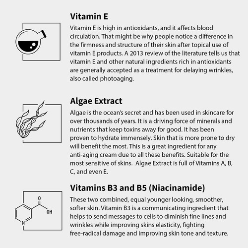 Cola para rugas, linhas finas e manchas da idade. Hidratante antienvelhecimento para a pele com vitamina E, extrato de algas e vitaminas B3 e B5.
