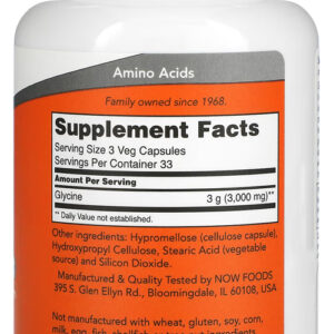 Glicina 1000mg Now Foods 100 Cápsulas Vegetarianas – No Brasil
