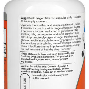 Glicina 1000mg Now Foods 100 Cápsulas Vegetarianas – Importado