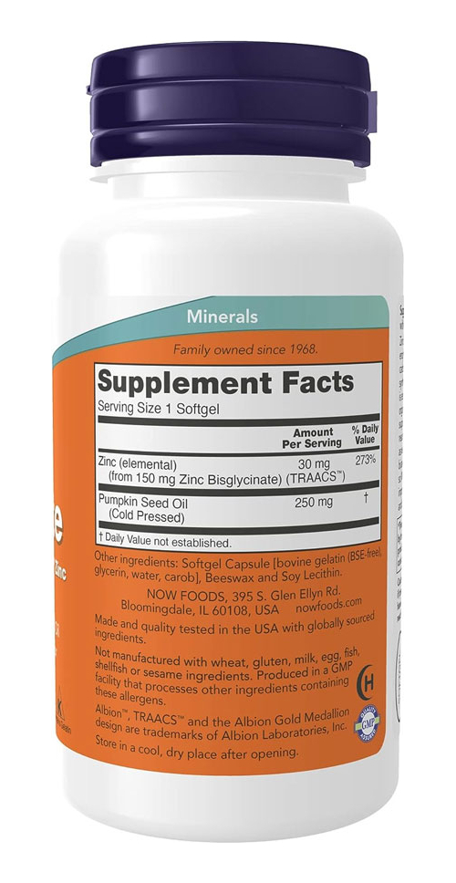 Glicinato de Zinco 30mg Now Foods Zinc Glycinate 120 Softgels Suporte Natural Metabolismo – Importado